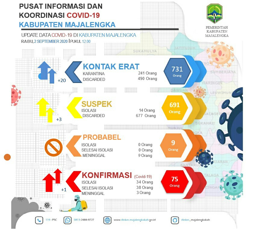 Sedangkan sisanya memiliki gejala seperti pada umumnya disamping penyakit yang menyertaiinya. Data tersebut terungkap dari Pusat Informasi dan Koordinasi Covid-19 Majalengka.